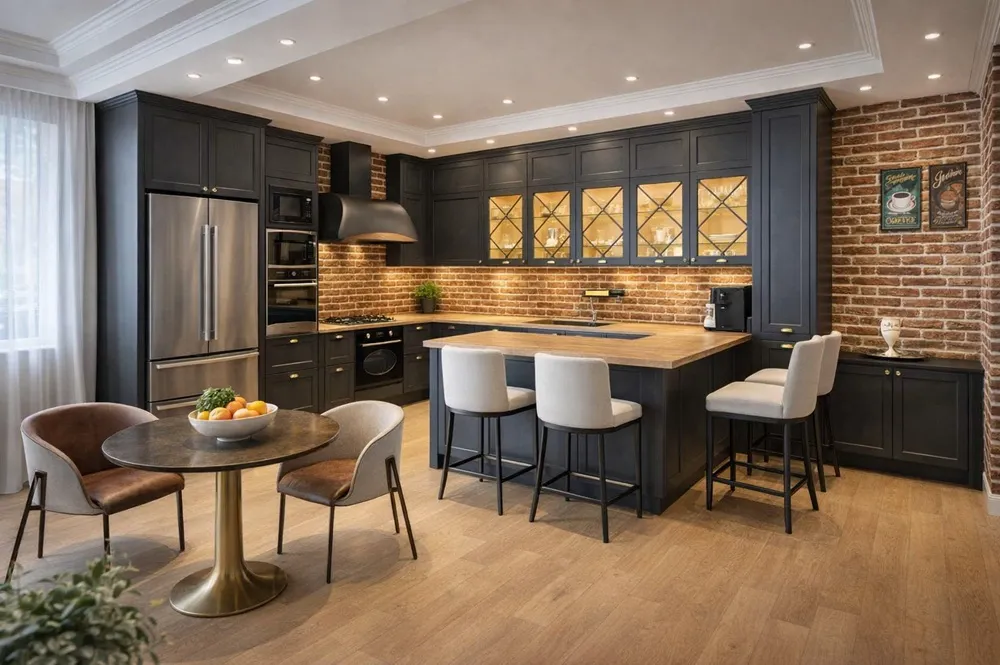 Большой кухонный гарнитур с островом Норвуд — угловая кухня объединяет функциональность и эргономику в едином дизайне. Такая планировка оптимально распределяет зоны хранения и приготовления пищи, создавая комфортное пространство для всей семьи. Подходит для разных форматов помещений и стилей жизни.