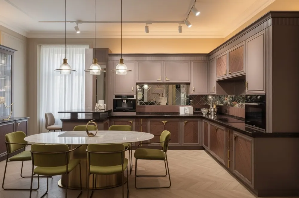 Классическая угловая кухня Премьер — угловая кухня сочетает модульный кухонный гарнитур и продуманную эргономику, создавая рабочую зону с последовательным размещением мойки, плиты и зон подготовки, оснащенную системами хранения и выдвижными органайзерами, которые упрощают доступ к посуде и инструментам, повышают удобство готовки и поддерживают порядок в активной кухонной жизни с возможностью гибкой перестановки модулей и оптимизации.