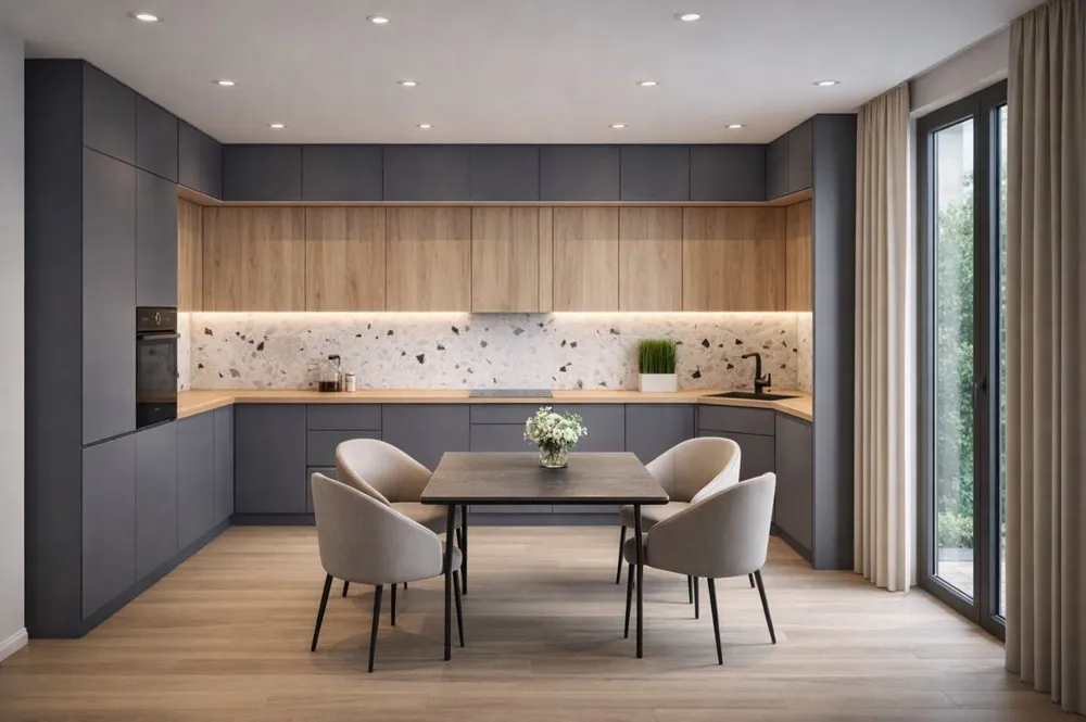 Угловой кухонный гарнитур Андромеда — функциональный кухонный гарнитур, который благодаря продуманной эргономике рабочей зоны обеспечивает удобное размещение техники, гибкие модули хранения и логичную последовательность действий при приготовлении, сервировке и уборке, повышая комфорт и организацию пространства, экономя время и упрощая доступ к посуде и принадлежностям с удобными выдвижными ящиками и практичными полками для хранения.