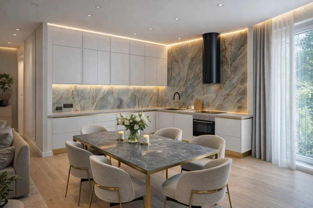 Угловой кухонный гарнитур Хьюго — идеальное решение для рационального использования пространства. Она органично вписывается в помещения разной площади, создаёт удобную рабочую зону и оставляет достаточно места для свободного передвижения. Эргономичная планировка обеспечит комфорт при готовке и приёме пищи.