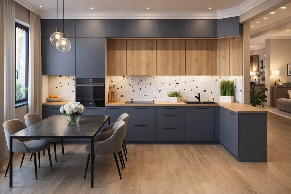Угловой кухонный гарнитур Мерида — универсальный кухонный гарнитур с оптимальной эргономикой, где рабочая зона соединяет несколько функциональных участков, модули хранения распределены по логике использования, а выдвижные системы и органайзеры помогают поддерживать порядок, ускорять приготовление и создавать комфортное пространство для бытовых задач и совместной готовки с возможностью перестановки модулей и добавления аксессуаров удобно.
